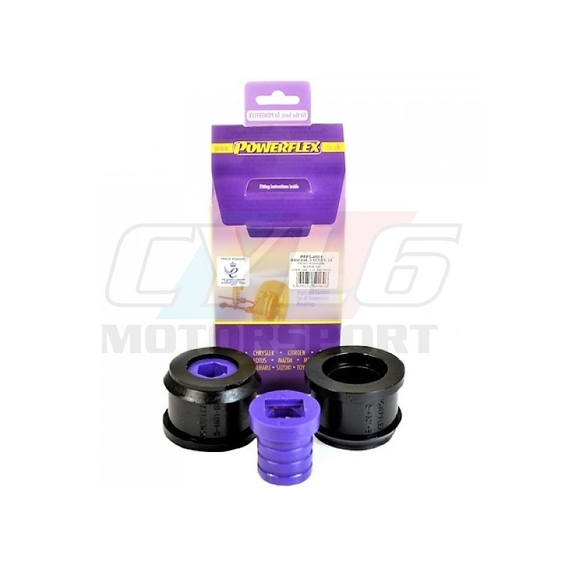 Paire de silent-blocs Powerflex PFF5-4601 pour oreille de triangle Ø66 mm. Compatibles BMW E46 & Z4 E85/E86. Remplace OEM 31126783375 / 31126783376. Rigidité accrue, tenue de route améliorée.